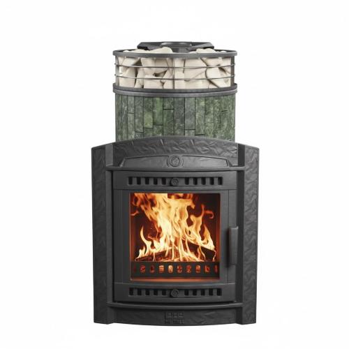 • Закрытая каменка, расположенная внутри топки позволяет провести нагрев камней до очень высоких температур. Камни находятся внутри корпуса каменки и нагреваются непосредственно пламенем равномерно со всех сторон.