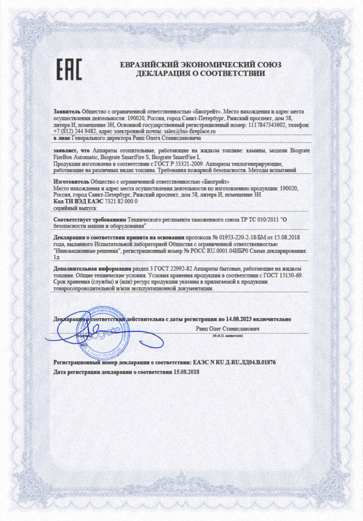 Инструкции, чертежи, документы - Автоматический биокамин Biograte Series A 800