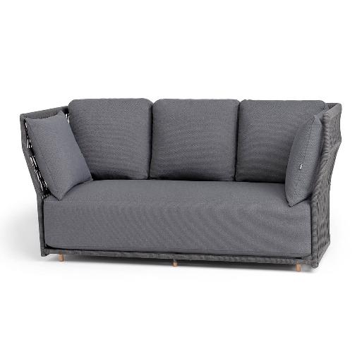 "Лугано" диван 3-местный плетеный из роупа, каркас алюминий темно-серый (RAL7024) муар, роуп темно-серый круглый, ткань темно-серая YB25-0027