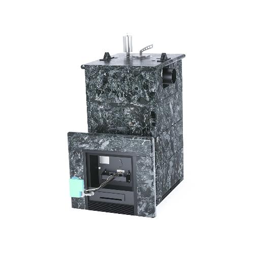 Банная печь ИзиСтим Анапа в полноценном кожухе Пироксенит с боковым подключением и с газовой горелкой (ГГУ-40)