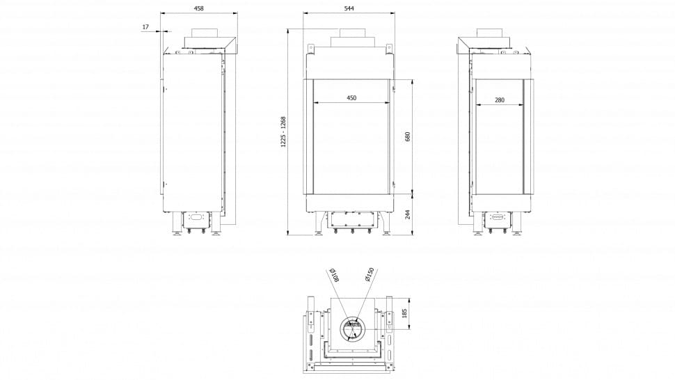 - Диаметр дымохода, мм 150