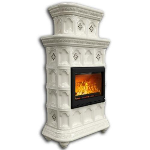 Готовый камин КимрПечь Истра пристенный-двухъярусный (топка Ладья 700, цвет Ваниль)