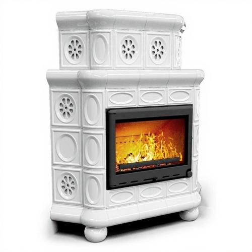 Готовый камин КимрПечь Медальон двухъярусная угловая с топкой Астов К7454 (белый)