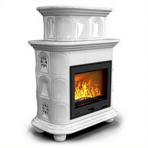 Готовый камин КимрПечь Прованс двухъярусный центральный с топкой Астов МЛ 700 (белый)