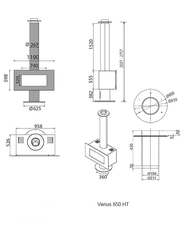 Инструкции, чертежи, документы - Готовый камин M-design Venus 850 HT (Венус 850 HT) с шамоплексом