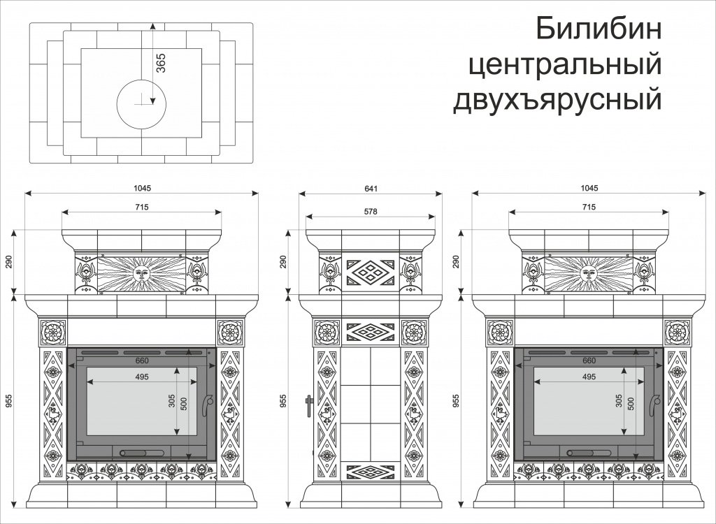 Инструкции, чертежи, документы - Облицовка камина КимрПечь Билибин центральный-двухъярусный художественный для топок 600