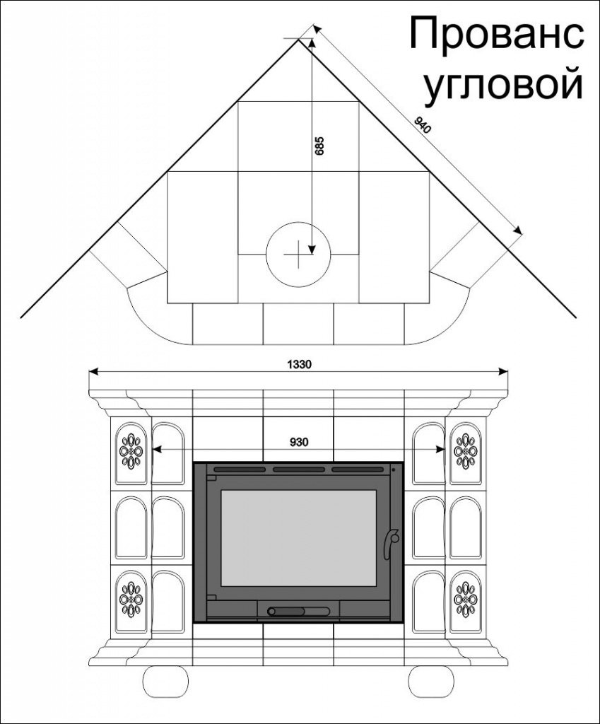 Инструкции, чертежи, документы - Облицовка камина КимрПечь Прованс угловой для топок 600