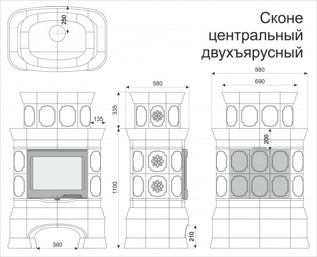 Инструкции, чертежи, документы - Облицовка камина КимрПечь Сконе центральный-двухъярусный
