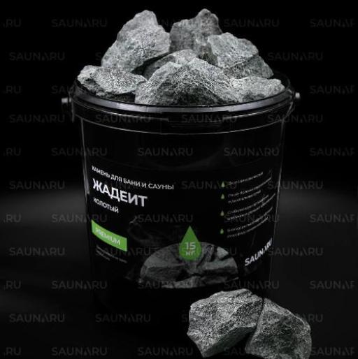 Камни для сауны Saunaru Жадеит колотый Premium, фракция до 100 мм, ведро 15 кг