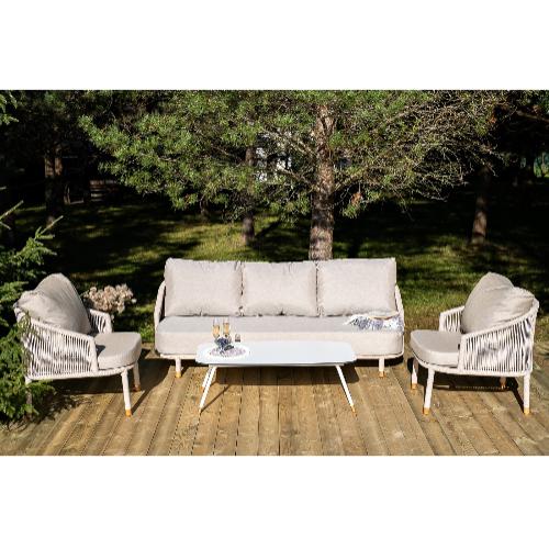 Лаунж-зона 4SiS Багамы 5-местная плетеная из роупа (веревки), каркас алюминиевый бежево-серый, роуп серо-коричневый
