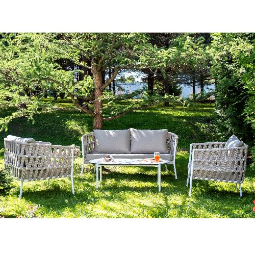 Лаунж-зона 4SiS Диего 4-местная плетеная из роупа (веревки), каркас алюминиевый белый, роуп бежевый