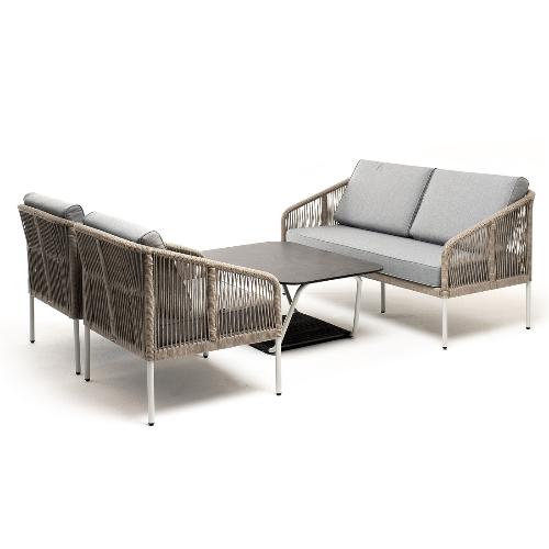 Лаунж-зона 4SiS Канны 4-местная из роупа со столом Глория (серый гранит), каркас алюминиевый светло-серый, роуп серый меланж