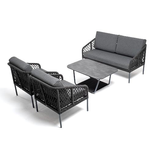 Лаунж-зона 4SiS Канны 4-местная из роупа узелкового плетения, каркас алюминий, роуп темно-серый