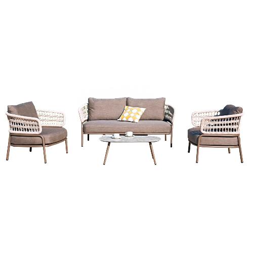 Элегантный и изысканный комплект лаунж-мебели Bled станет отличным выбор для создания островка отдыха на открытом воздухе. Гладкие линии и мягкие подушки дополняются уникальным узором плетения. Весь набор изготовлен со вкусом, в универсальных и притягательных цветах, которые отлично впишутся в любые стили пространств. Устойчивые и надежные материалы изготовления позволяют использовать мебель на защищенных открытых площадках.