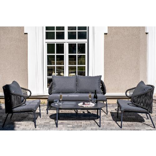 Лаунж-зона 4SiS Милан 4-местная плетеная из роупа (веревки), каркас алюминиевый темно-серый, роуп темно-серый