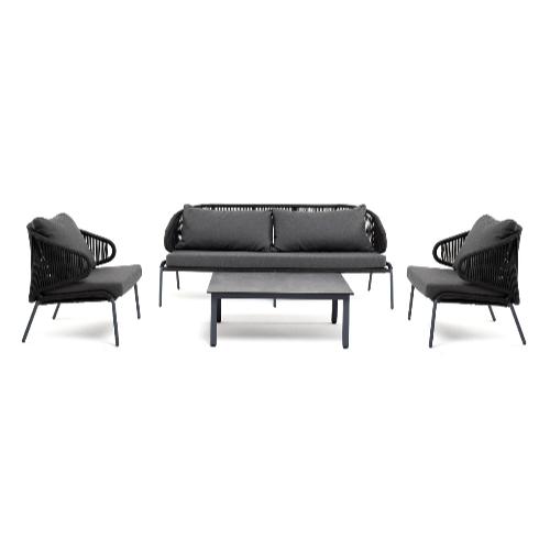 Лаунж-зона 4SiS Милан 5-местная плетеная из роупа (веревки), каркас алюминиевый серый, роуп темно-серый