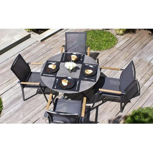 Обеденный комплект Brafritid Timra AL-N антрацит/натуральный, алюминий/тик
