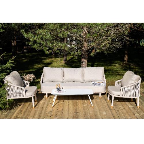 Лаунж-зона 4SiS Верона 5-местная плетеная из роупа (веревки), каркас алюминиевый белый, роуп бежевый