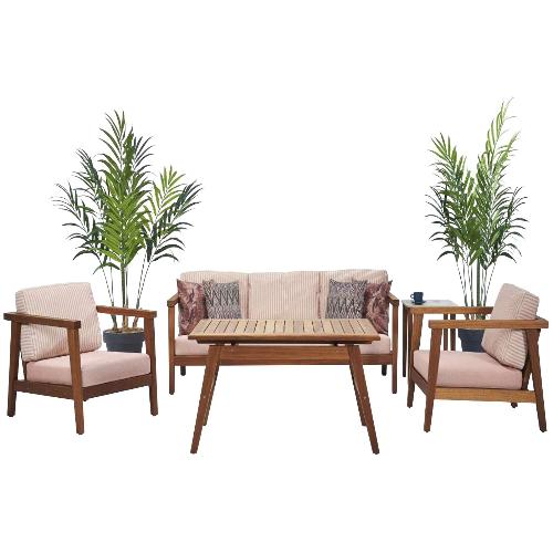 Likya представляет собой комплект, рассчитанный на 5 персон, состоящий из 2-х кресел, трехместного дивана и кофейного столика, которые обеспечивают удобство и комфорт во время сидения. Комплект обладает приятным дизайном, который придает ощущение гостеприимства и теплоты. Максимальное удобство обеспечивают мягкие подушки из материалов для применения на улице. Комплект предназначен для использования на улице: летние площадки различных заведений, частные террасы, дворики загородных домов. Он дает возможность с наслаждением проводить время на свежем воздухе.