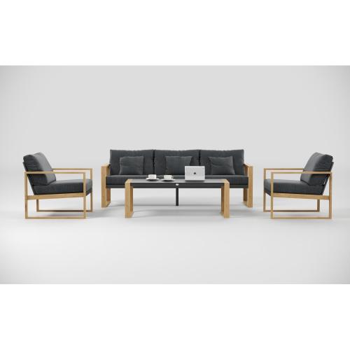Цвет: каркас темно - серый карбон, тик / подушки темно - серые / столешница темно - серый карбон