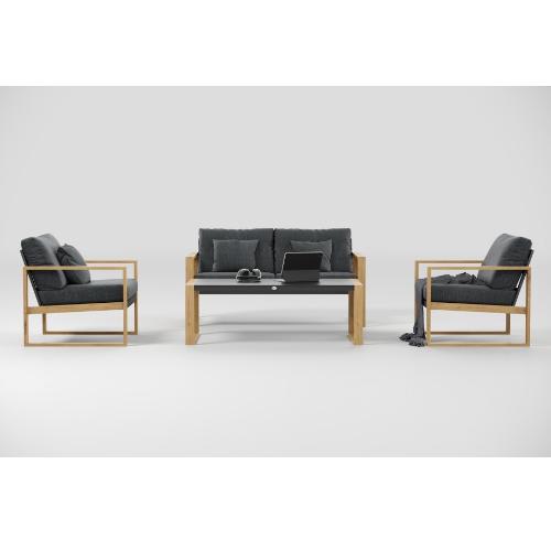 Цвет: каркас темно - серый карбон, тик / подушки темно - серые / столешница темно - серый карбон