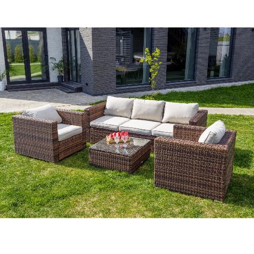 Обеденный комплект Royal Family Karl с трёхместным диваном коричневого цвета