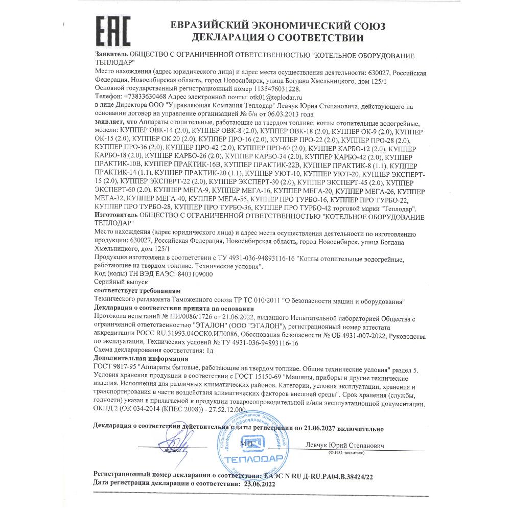 Инструкции, чертежи, документы - Котел твердотопливный Теплодар Уют 10