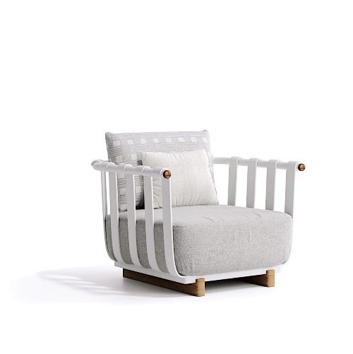 Художественная двойственность кресла Portofino выражается с помощью извилистых и традиционных форм, контрастирующих с современной линейной структурой. Белый или графитовый алюминий в сочетании с деталями из натурального тика придают креслу уникальный и неподвластный времени характер. Оно идеально подойдет для обстановки летних кафе, террас ресторанов, а также будет прекрасно смотреться в двориках частных домов.