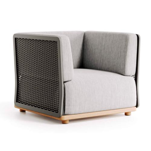Кресло Switch отличается своим современным и оригинальным дизайном. Оно вдохновленно простыми вещами, но разработано с ярким акцентом в виде каркаса, изготовленного из прочной алюминиевой сетки. Максимальный комфорт обеспечивают подушки на сиденье, спинке и боковинах. Большой выбор тканей позволяет персонализировать кресло под любые стилевые направления открытых пространств и нужды потребителей. Оно идеально подойдет для обстановки летних кафе, террас ресторанов, а также подойдет для двориков частных домов.