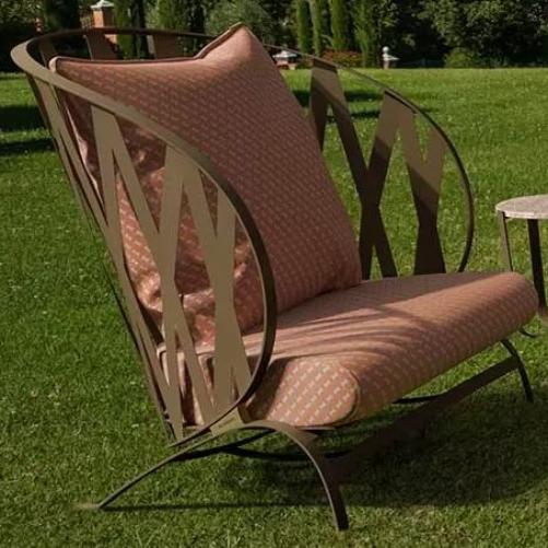 Коллекция Sunrise отличается стройными конструкциями и полным отсутствием острых краев. Эта новая коллекция является гимном легкости благодаря конструкциям, полностью изготовленным из плоского железа. Прочность железа контрастирует с мягкими линиями и учтивостью каждого элемента. Все это усиливается и возвышается еще больше за счет выбора оригинальных деталей и отделки: лакокрасочное покрытие представлено в сложной цветовой гамме от золотого до бронзового с металлическим и перламутровым эффектом. Фурнитура хромированная. Ткани имеют нестандартные узоры, которые напоминают ключевые концепции коллекции: обволакивающие оттенки и медленное течение времени.