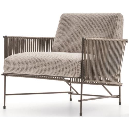 Семейство Kyo пополнилось новой коллекцией Kyo Outdoor. Структура и удобство, которые отличают кресло Kyo Outdoor, не изменились, вместо этого подлокотники и спинка теперь обогащены веревочным плетением, что делает его безоговорочно идеальным для использования на открытом воздухе. Продуманная конструкция и тщательность исполнения каждой детали позволяют добиться максимального уровня комфорта. Плетеные детали позволили создать оригинальный дизайн, оптимально подходящий для уличной модели. Монолитная спинка и сиденье гармонично сочетаются с ажурными подлокотниками, создавая эффект прочности и невесомости в одно и то же время. Кресло будто парит в воздухе, не подчиняясь всем известным законам гравитации. Кажущееся впечатление невесомости обманчиво, изящный стальной остов надежно удерживает изделие на полу, устойчиво сохраняя равновесие. Модель выглядит необычайно уютно и мягко, так и маня окунуться в эти бархатистые объятия с чашечкой кофе и интересной книжкой.