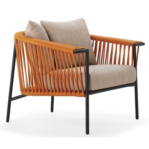 - Плетение, которое полностью покрывает периметр каркаса кресла, выполнено из Oval Trendyrope - полиэстер, устойчивый к УФ-излучению, огнестойкий и протестированный IMO.