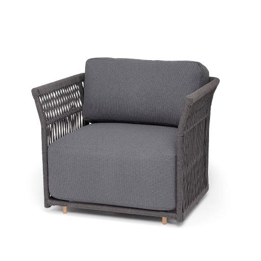 "Лугано" кресло плетеное из роупа, каркас алюминий темно-серый (RAL7024) муар, роуп темно-серый круглый, ткань темно-серая YB25-0027