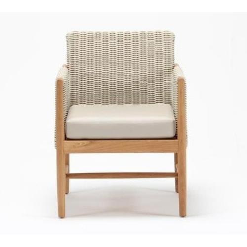 Уличное деревянное кресло Nora с уникальным плетением из искусственного ротанга на спинке и подлокотниках, подушкой сиденья из погодостойкой ткани прекрасно подойдет для создания стильной атмосферы на открытой террасе ресторана или кафе, обеспечивая посетителям комфорт и эстетичность. В домашнем использовании такое кресло станет элегантным дополнением к садовой зоне или веранде, создавая уютное место для обеда под открытым небом. Благодаря своему стильному дизайну и высокому качеству материалов, оно также идеально подходит для использования в престижных отелях, где важно сочетание роскоши и функциональности в мебели.