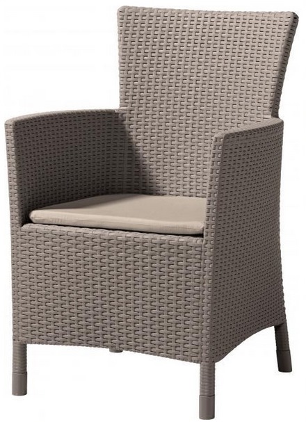 Iowa - это элегантное и комфортное садовое кресло, предлагаемое в комплекте с подушкой. Широкая гамма цветов и оригинальная, подобная ротанговой, фактура поверхности придется по вкусу даже самым требовательным пользователям. Изготовлено из стойкой к воздействию УФ-излучения и погодных условий высококачественной пластмассы. Очень просто собирается и легко чистится.
