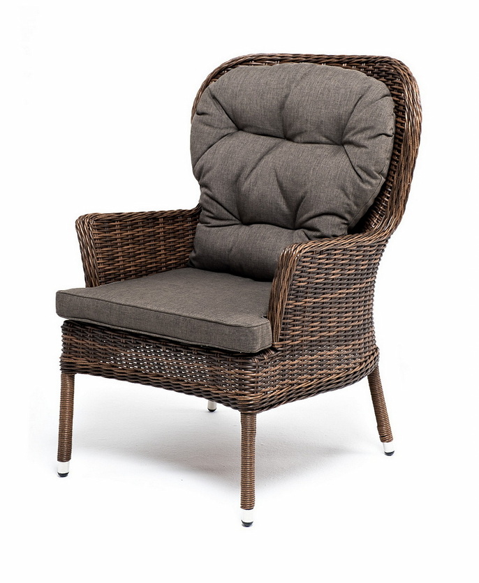 "Алиса" кресло плетеное, цвет коричневый с подушками