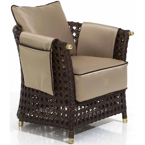 Удобное кресло Rigel имеет каркас из натурального ротанга, плетение выполнено из сыромятной кожи, которая является культовым элементом коллекции Orangerie. Сыромятная кожа - это высокопрочный, роскошный натуральный материал, изготовленный из кожи животных (ягненка, теленка). Ее разрезают на тонкие полоски, которые затем сплетают. Такая кожа подходит для окрашивания, а добавление клея повышает эстетичность и прочность изделия, защищая его в течение длительного времени. Натуральное плетение - это кропотливый процесс, который выполняется исключительно внутри компании DFN опытными мастерами-ремесленниками. Каждое изделие получается уникальным и отдает дань уважения великой классике - узору венской соломы. Кресло характеризуются наличием мелких деталей, таких как ручки, хромированные ножки и карман для журналов.