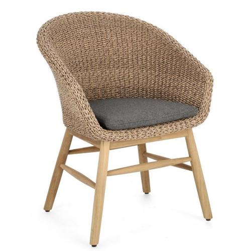 Оригинальное кресло Genesis привлекает внимание своим обволакивающим плетеным корпусом. Он дополняется комфортной подушкой со съемным чехлом из солнцезащитной ткани. Деревянные ножки изготавливаются из высококлассной древесины тика SVLK, являющейся прочной, устойчивой к различным погодным условиям, грибкам и выдерживающей разнообразные атаки паразитов и насекомых. Модель отлично впишется в сады или частные дворики загородных домов.