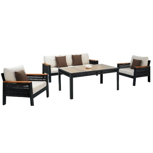 Этот комплект создан для тех, кто ценит качество, комфорт и современный дизайн. Элегантный и минималистичный дизайн комплекта гармонично впишется в любой ландшафтный стиль. Сочетание металла, дерева и плетения роупом создают атмосферу изысканности и уюта.