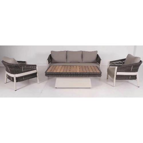 Этот комплект создан для тех, кто ценит качество, комфорт и современный дизайн. Элегантный и минималистичный дизайн комплекта гармонично впишется в любой ландшафтный стиль. Сочетание металла, дерева и плетения роупом создают атмосферу изысканности и уюта.