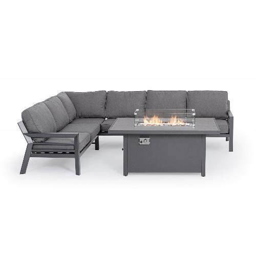 - Стол из алюмминия с порошковым покрытием с камином со стеклянной столешницей: стол с камином придает садовой мебели элегантный вид. Стеклянная столешница толщиной 8 мм с трафаретной печатью с отделкой "под керамику" делает его идеальным местом для посиделок в саду и вечерних бесед.