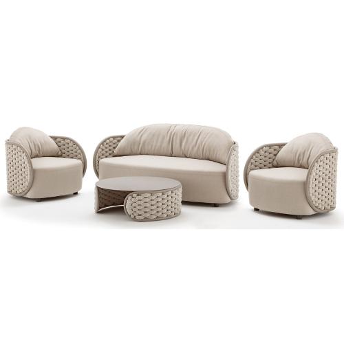 Комплект Mojo состоит из двухместного дивана, двух кресел и журнального столика. Устойчивый и надежный каркас кресел и дивана выполнен из алюминия и оплетен текстиленовым и резиновым канатом. Подушки, выполненные из устойчивого к пятнам и ультрафиолетовому излучению акрила, обеспечивают комфортный отдых. Журнальный столик выполнен из алюминия. Стильный и удобный комплект можно разместить в зоне отдыха в помещении или на открытом воздухе.