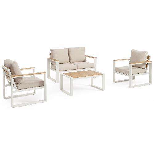 Комплект лаунж мебели Leandro — превосходный спутник для создания незабываемых моментов на свежем воздухе или в уютном уголке дома. Каждый элемент комплекта Leandro создан с любовью к деталям и акцентом на высокое качество. Алюминиевая конструкция с порошковым покрытием не только гарантирует долговечность и стойкость к капризам погоды, но и придает мебели современный и утонченный вид, который легко впишется в любой ландшафтный дизайн. Вставки из древесно-полимерного композита (ДПК) на подлокотниках, спинке дивана и кресел, а также на столешнице создают гармонию с природой, добавляя теплоты и текстуры.