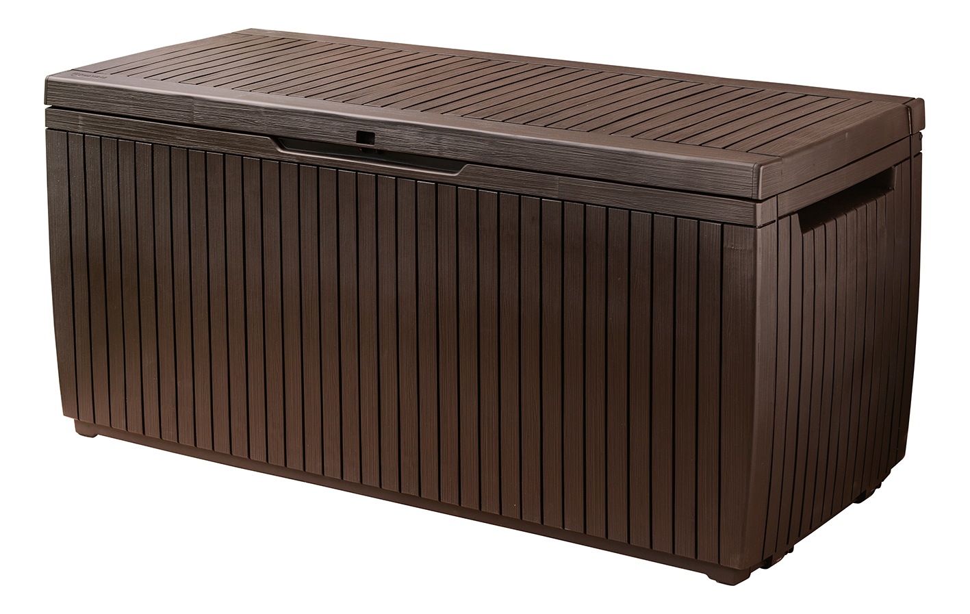 Если Вы любите классические, но вместе с этим функциональные решения, Вам обязательно понравится инновационный сундук Спрингвуд. Продукт характеризуется высокой стойкостью к воздействию внешних факторов, и, прежде всего, оптимальной вместимостью 305 литров. Благодаря этим преимуществам, Вы свободно можете хранить в нем пледы, декоративные подушки, другие аксессуары или мелкие садовые инструменты. Учитывая, что сундук имеет устойчивую, прочную конструкцию, его можно использовать в качестве комфортного сиденья для 2 человек.