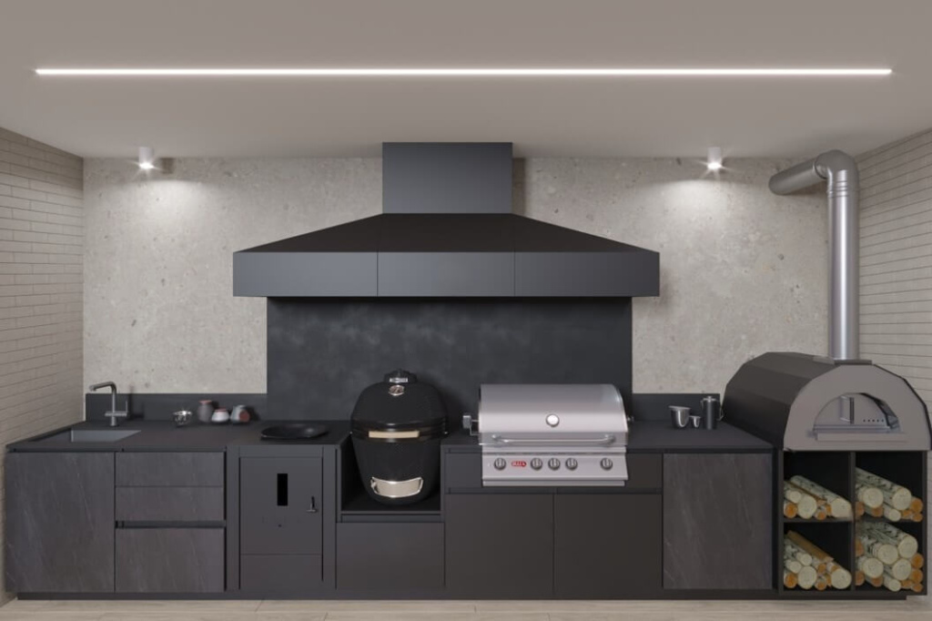 В базовую комплектацию не входят фартук, столешница, мойка, смеситель, керамический и газовый гриль.