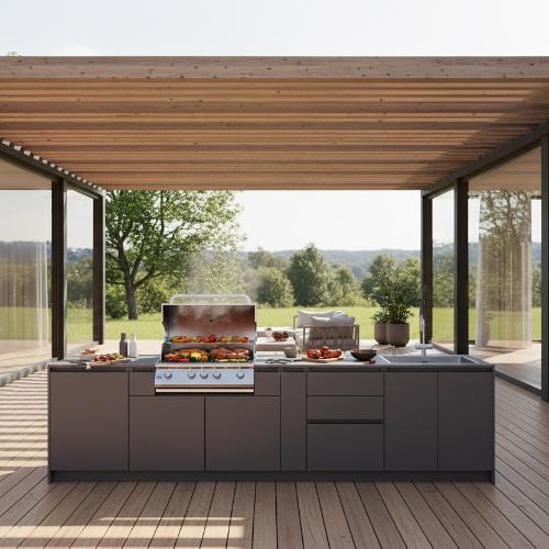 Стандартные отдельные модули в большом ассортименте позволяют создать абсолютно любой кухонный барбекю комплекс на свежем воздухе. Дополнительно возможна разработка индивидуальных решений.