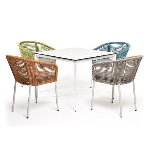Обеденная группа 4SiS Аркобалено на 4 персоны со стульями Марсель, каркас белый, роуп цветной
