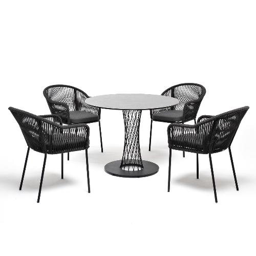 Обеденная группа 4SiS Лион на 4 персоны со стульями Лион темно-серый, круглый стол серый гранит