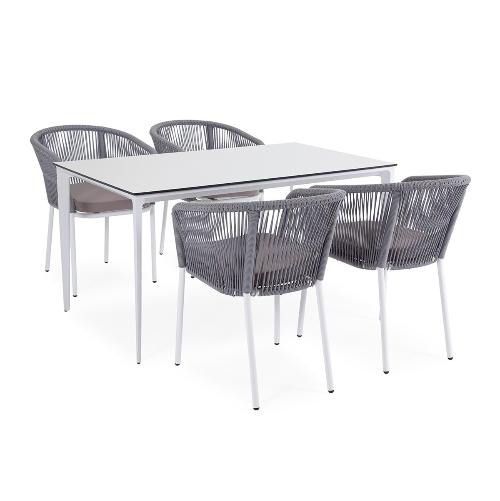 Обеденная группа 4SiS Малага на 4 персоны со стульями Марсель, каркас белый, роуп светло-серый