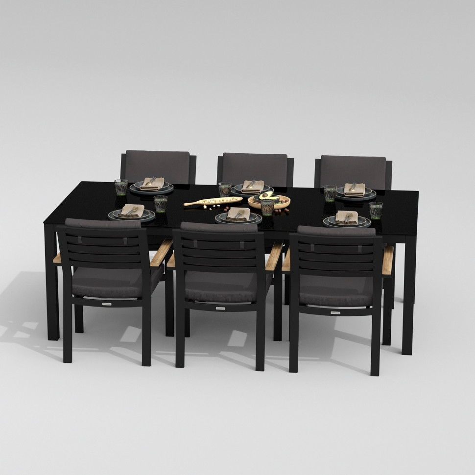 Обеденная группа CANA BONTA каркас карбон / стол стекло 220 / ткань антрацит